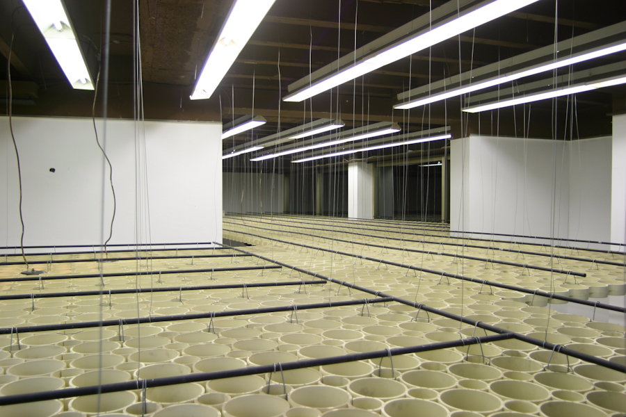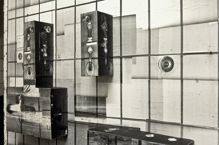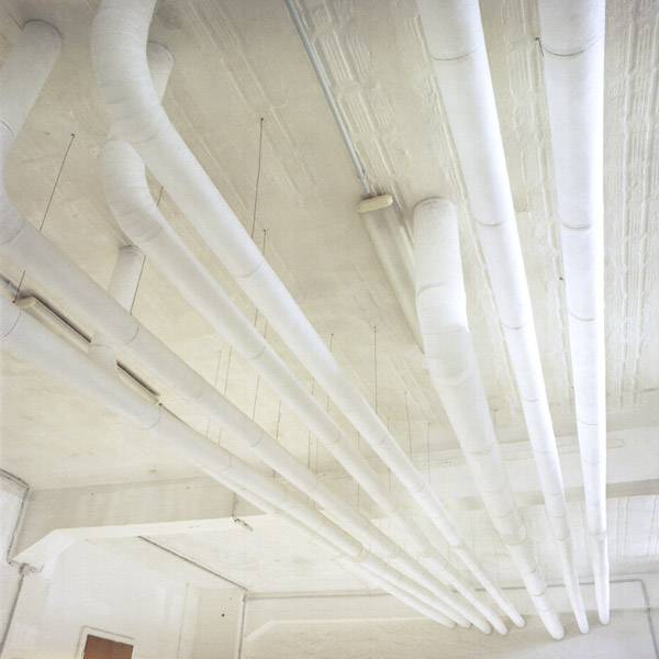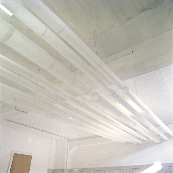 „Jetzt bricht etwas Neues vom Rand her in den Kontext und macht etwas sichtbar, das immer schon da gewesen ist.“ Mercedes Bunz. Das gefährliche Moment der Kopie Ganz unten im Haus, unter der Erdoberfläche zumeist, versteckt, liegt der Keller mit notwendiger Infrastruktur von zeitgenössischem Wohnen. Das Atelier ist im Keller, einem Raum mit spezifischer Atmosphäre und Dichte. Hier läuft das Abwasser-Netz des Hochschulgebäudes zusammen, wird hier hinausgespült. Rohre, viele. Dem Wachsen durch Verdopplung oder Zellteilung als organischem Prinzip steht in Lars Bergmanns Arbeit prinzipiell ein mechanisches gegenüber, das „cut and paste” des Computers. Kopieren und Einfügen oder endloses Nebeneinanderstellen, in halbdurchlässiger, ästhetisierender Form.J. Kurz