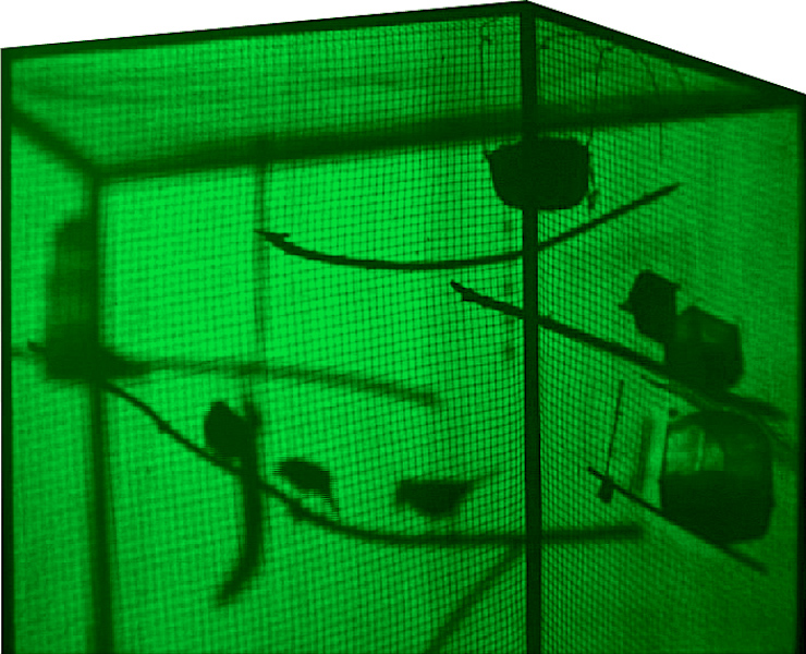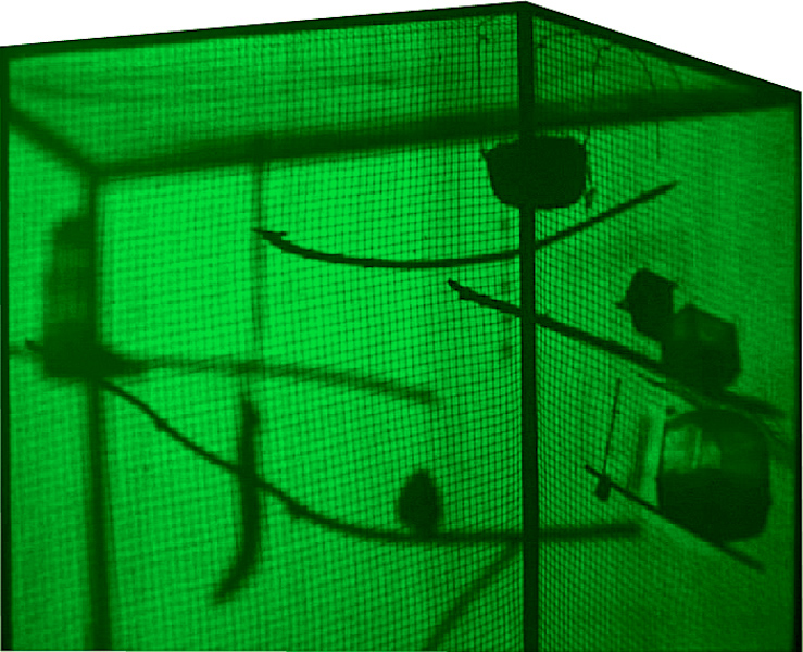 „Auf dem Dachboden des Friedemann-Bach-Hauses erzählt die Video-Installation Beziehungsweise: Ein Ausflug von Gemeinschaft, Machstrukturen und Verhaltensmustern. Im Käfig, dessen Schattenwurf als Projektion auf einer Leinwand im Raum installiert wird, leben drei Kanarien-Vögel. Ein Heim-Idyll, das nach längerem Beobachten trügt. Fast schon tragisch offenbart sich das Beziehungsgeflecht der kleinen Kreaturen und das Schattenbild, einer Fabel gleich, impliziert allzu Menschliches, bringt es vielleicht gar auf den Punkt. J. Kurz